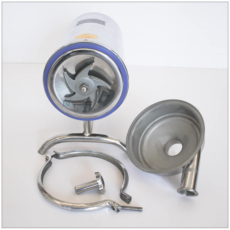 不锈钢卫生泵(又名奶泵、饮料泵)属单级、单吸式卫生泵,适合输送牛奶、饮料、酒等各种液体。它是食品、化工、医药等行业不可缺少的输送设备,特别适合于应用在管式杀菌、酸奶持温设备、CIP清洗等阻力较大的系统中。叶轮安置在泵壳里面,它和泵轴一起旋转,叶轮刀片以动能和压能的形式将能量传达给流体。该泵不可反向旋转,正确的旋转方向是顺时针,从电机后面可看出泵的旋转方向。